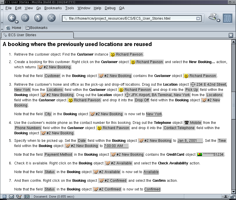 object '#2 New Booking' contains the Customer object 'Richard Pawson'" to